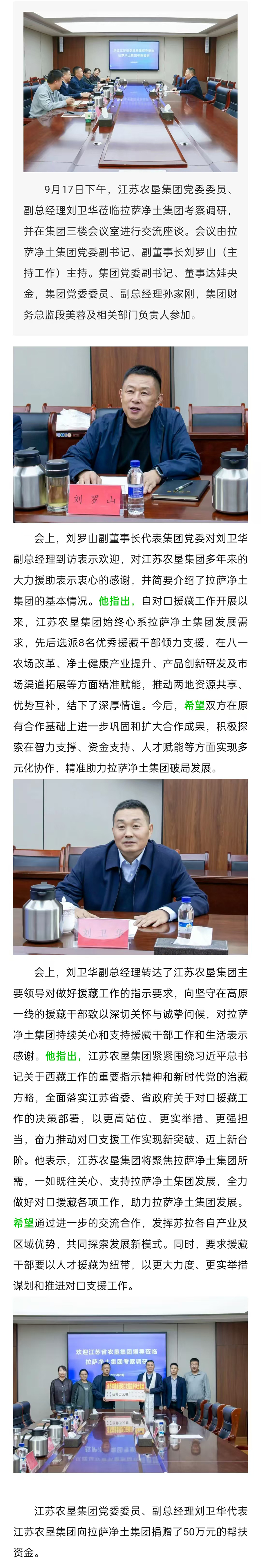 江苏农垦集团党委委员、副总经理刘卫华赴拉萨净土集团考察调研
