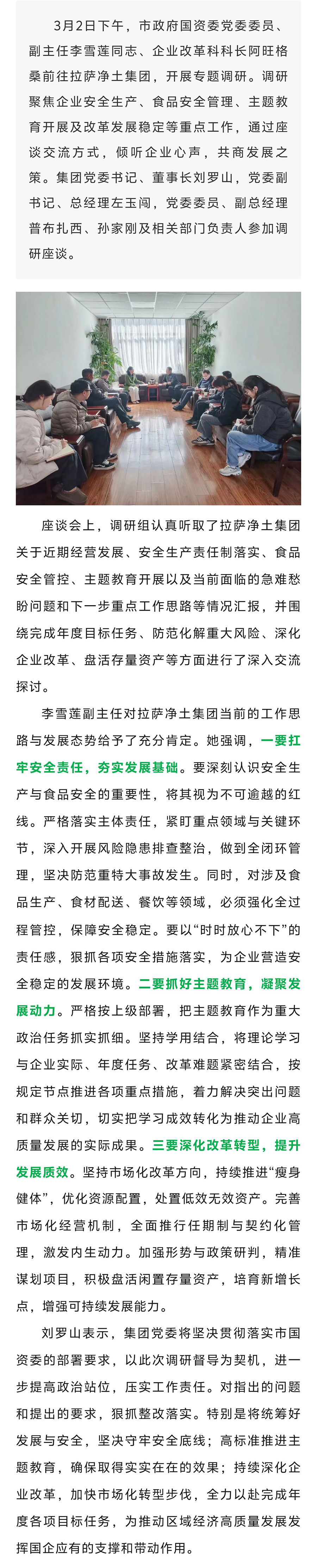 市政府国资委副主任李雪莲一行赴拉萨净土集团开展“四下基层”专题调研